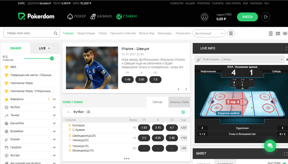 Как и к каждому из своих проектов, в ПокерДом подошли очень ответственно к организации беттинговой площадки, поэтому пользователи смогут оценить не только возможность ставить на спорт в рублях, но и получать при этом качественный, соответствующий международным стандартам сервис.